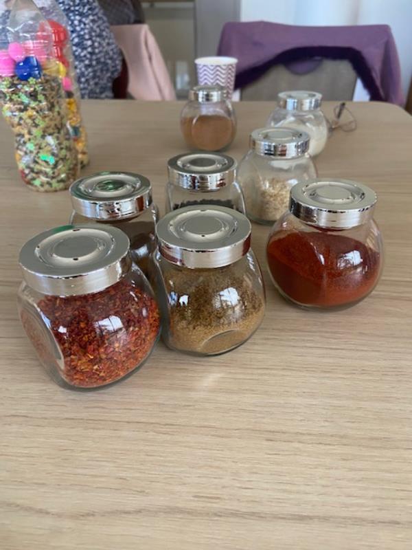 Les 5 sens ont été mis en éveil, l'ouïe (création d'une bouteille de relaxation avec différentes matières), le toucher (différentes matières de tissus), l'odorat (reconnaitre des odeurs de la cuisine), la vue (chercher ce que l'on veut mettre dans la bouteille), et le goût (dégustation de plusieurs parfum de jus de fruits).