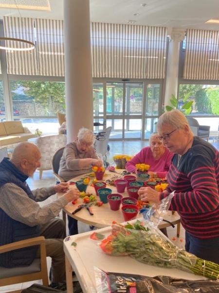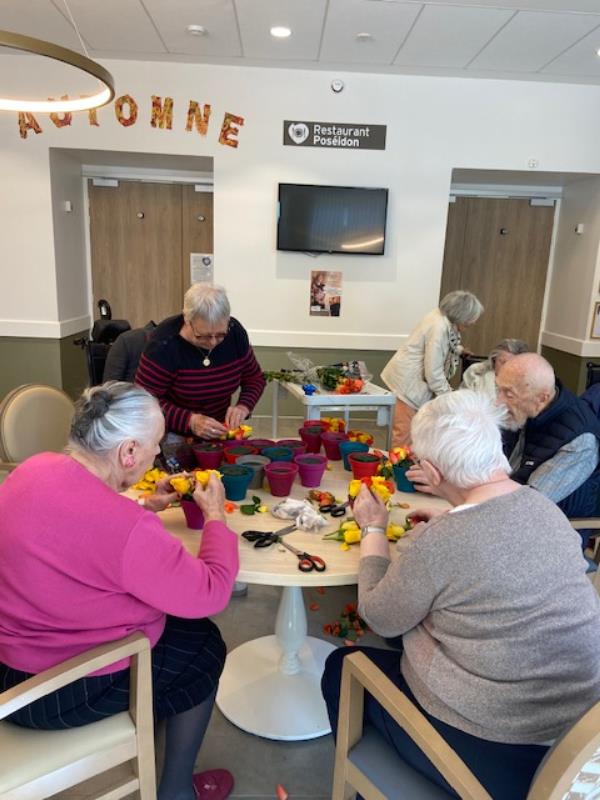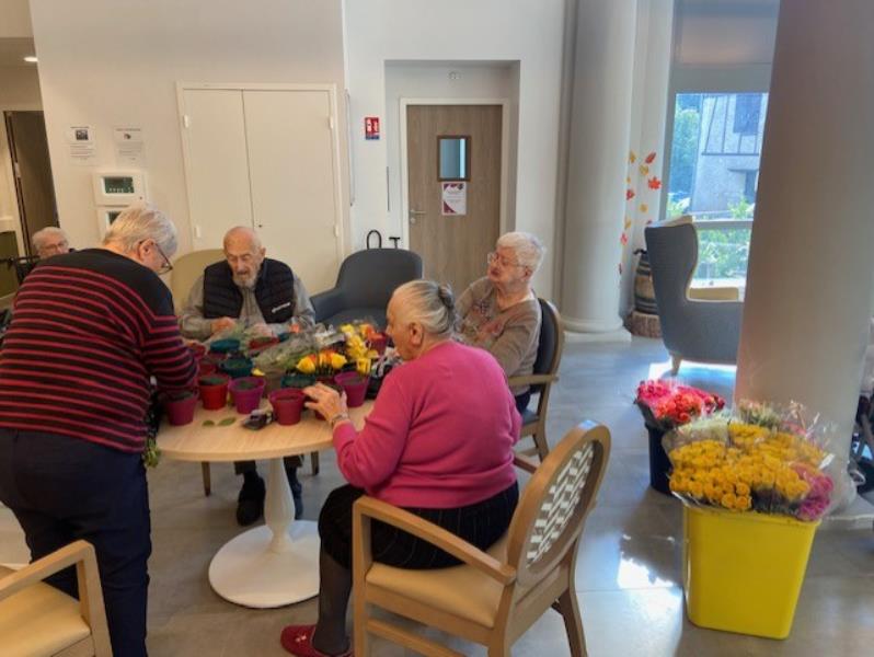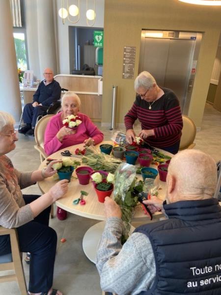 Quelques résidents ont participé à la création des bouquets pour égayer la Résidence un peu partout.